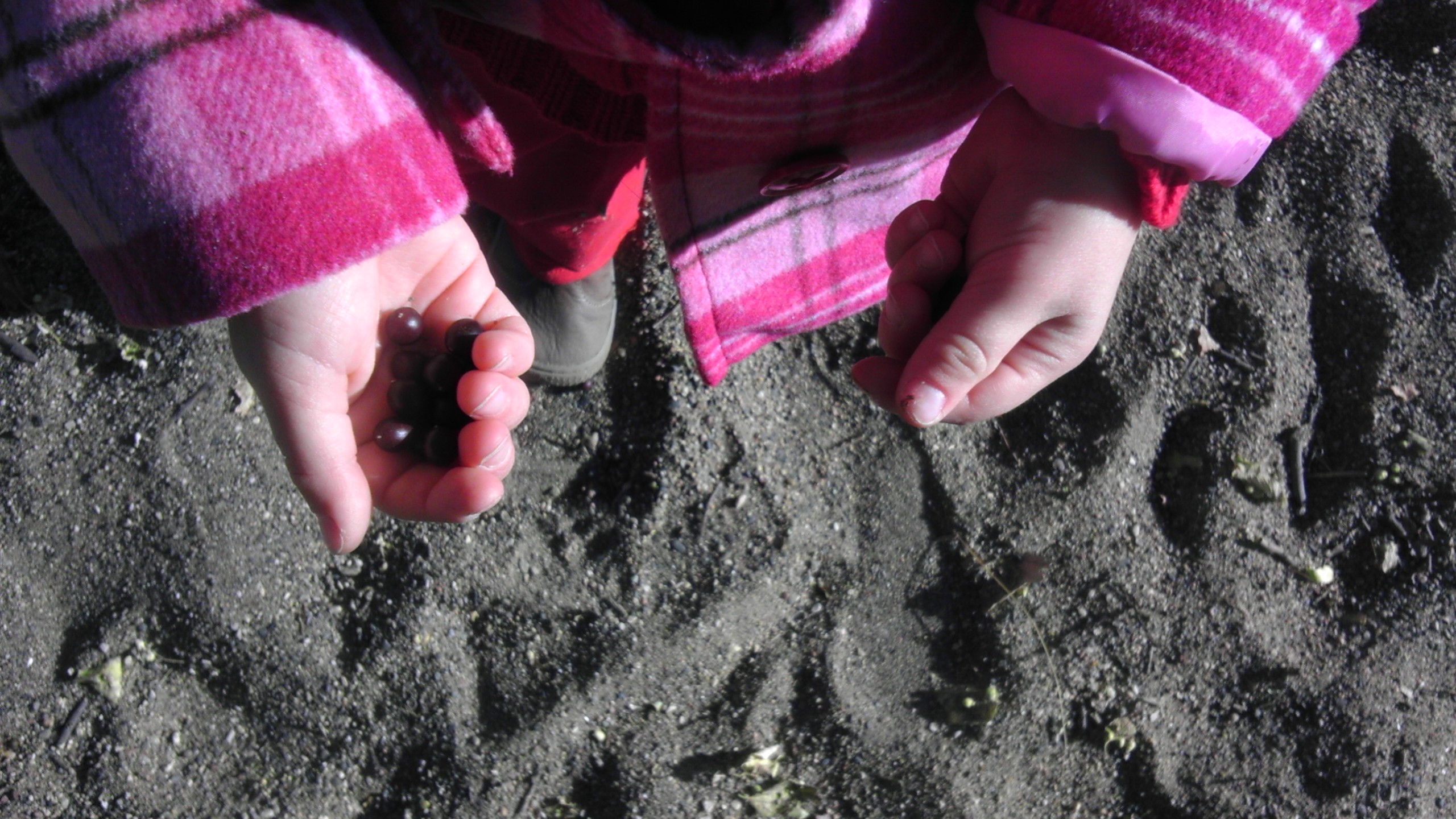 Searching for berries in the playground sand.