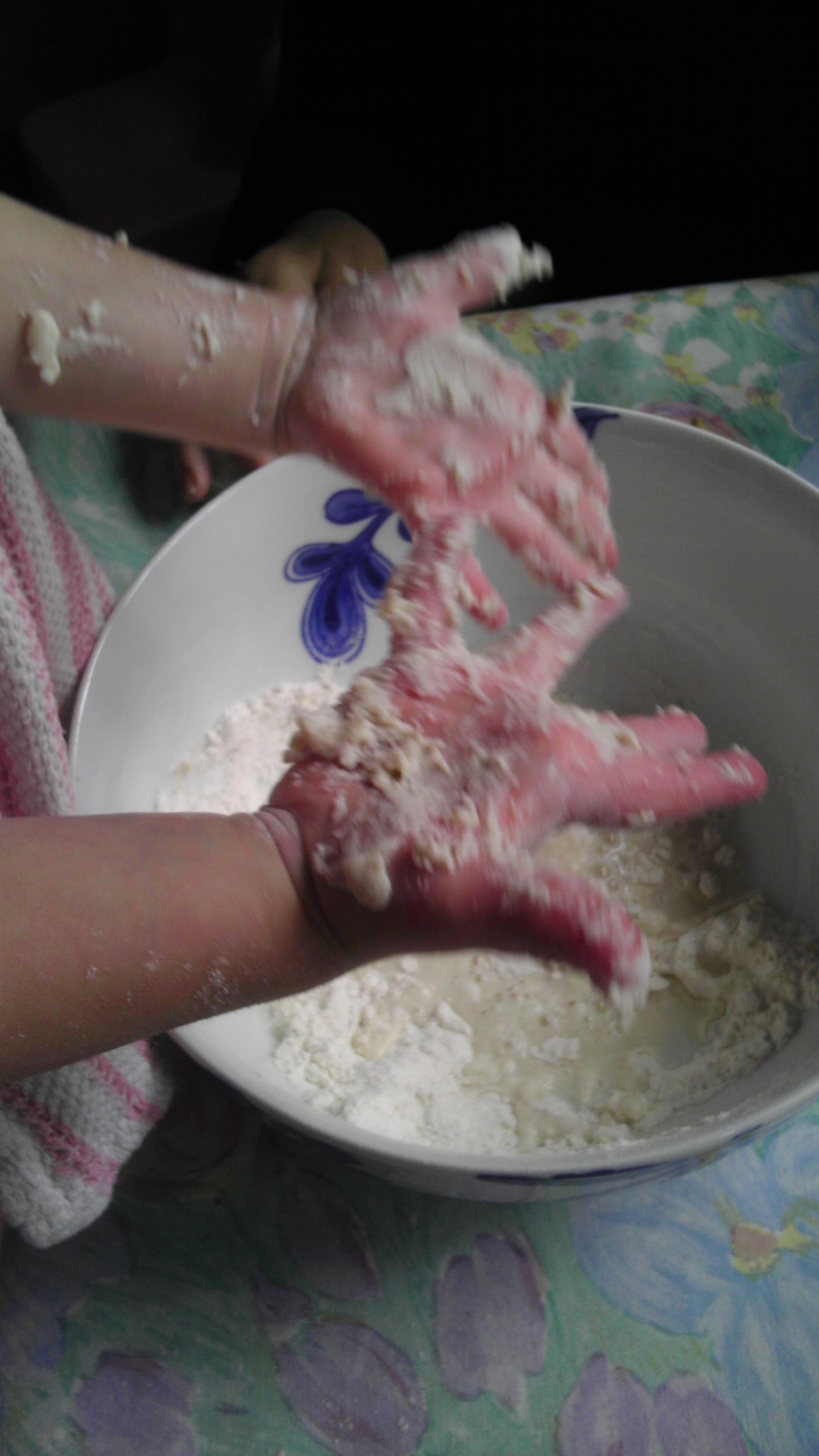 So I decided to try an edible playdough recipe that I found on Inspiration Laboratories: