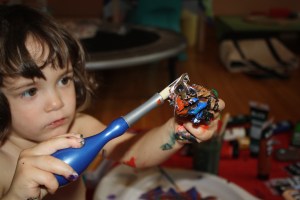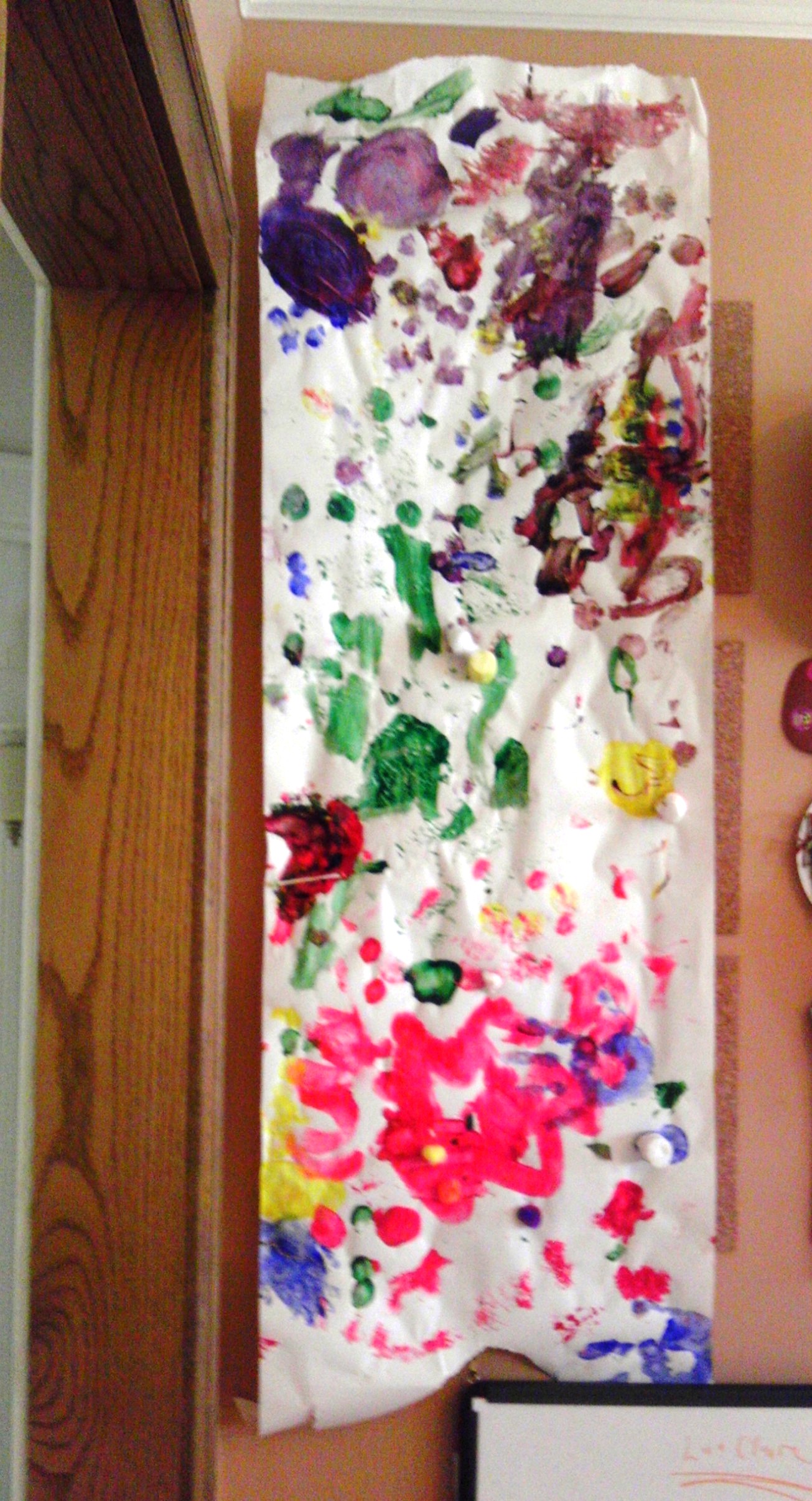 Off we went! I’m not sure if I even got to dinner given that the painting project was so much fun, but I’m guessing I did. My daughter LOVED this activity and was engaged and happy for a good 30 minutes, as I recall. We stopped when the paper was pretty much lacking in space.