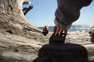 While walking on the beach we decided to gather some rocks, polished by the wind, water and rain, to take home and paint for the garden. Here we are collecting rocks.